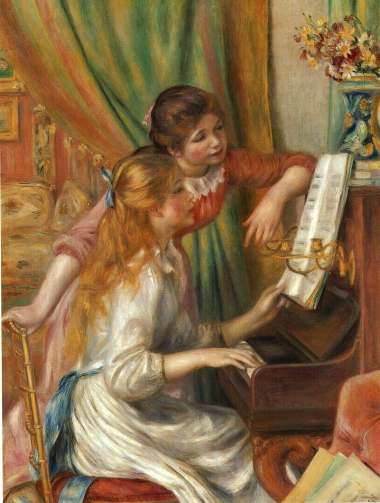 | 「FEILER(フェイラー)」シュニール織りハンカチ | コラボの本展限定品。ルノワール《ピアノを弾く少女たち》のデザイン。 |